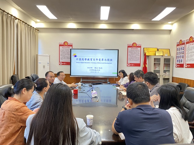 为进一步强化党纪学习教育,切实推动党建与业务工作深度融合,6月25日下午,副校长樊后保到机关第七党支部以《中国高等教育百年变革与图强》为题讲授专题党课,支部全体党员和教务处非党员干部参加活动。