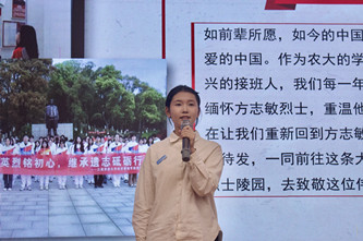 在宣讲团成员的带领下,大家走进了“民族要复兴,乡村必振兴”的伟大实践,欣喜于中国的乡村振兴道路造福千万家庭。认识了“崖畔的桂,雪中的梅”华坪女高校长张桂梅,感动于一生坚守自己的使命,铁了心要做高山峡谷里的“灯盏”,照亮孩子们前行的路。认识了为共产主义抛头颅洒热血的方志敏烈士,感受到了“敌人只能砍下我们的头颅,绝不能动摇我们的信仰”崇高革命信念。认识了“乞得种树术,将以疗国贫”一生致力于植物学研究的胡先骕先生,感受到了“科学救国、学以致用;独立创建、不仰外人”的先进教育思想。