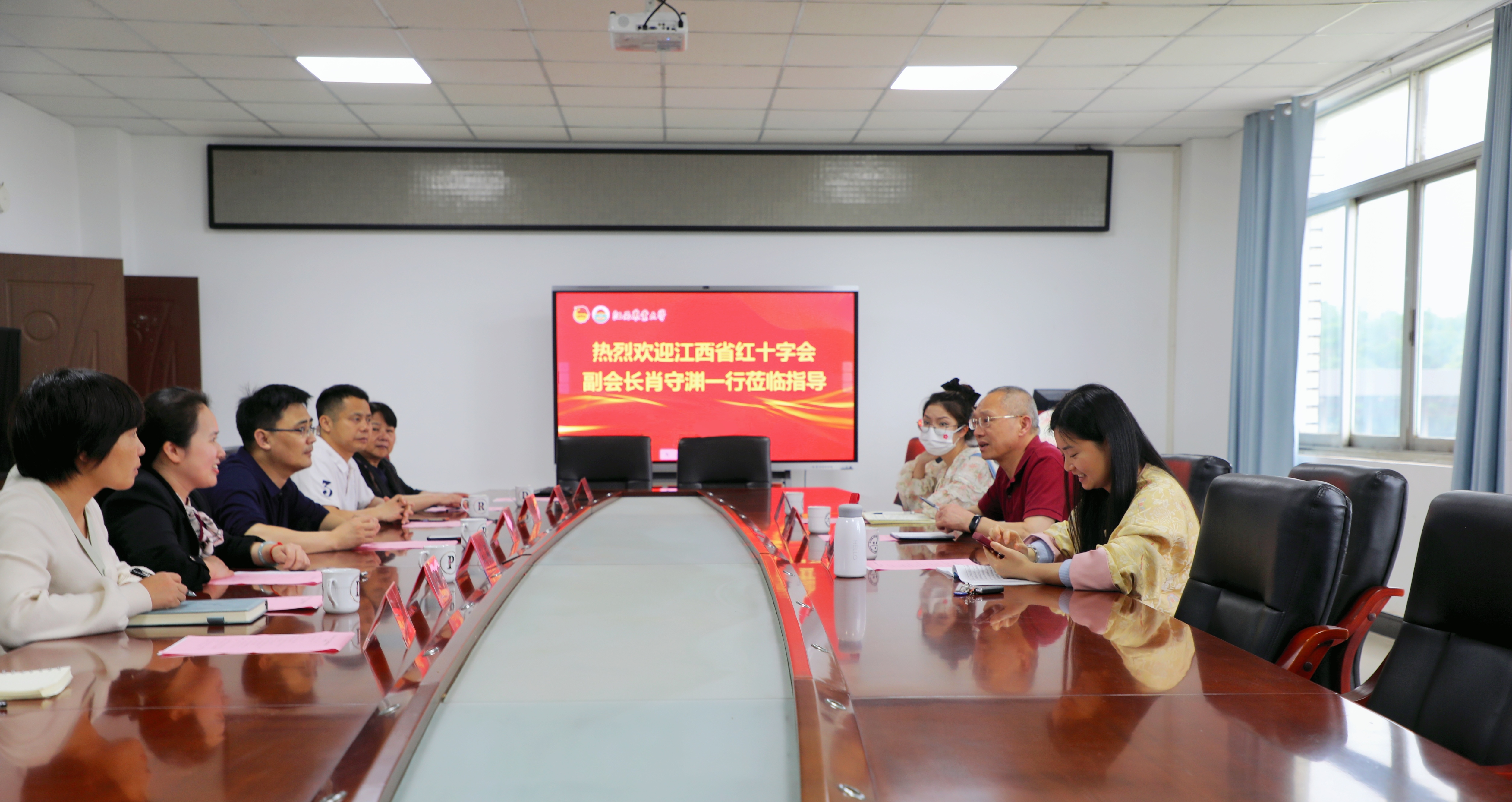 4月25日,江西省红十字会副会长肖守渊一行来校调研红十字健康促进项目。副校长张高亮、军体部、团委、医院和心理咨询中心等责任单位参加座谈。会前,副校长张高亮亲切会见了调研组一行。
