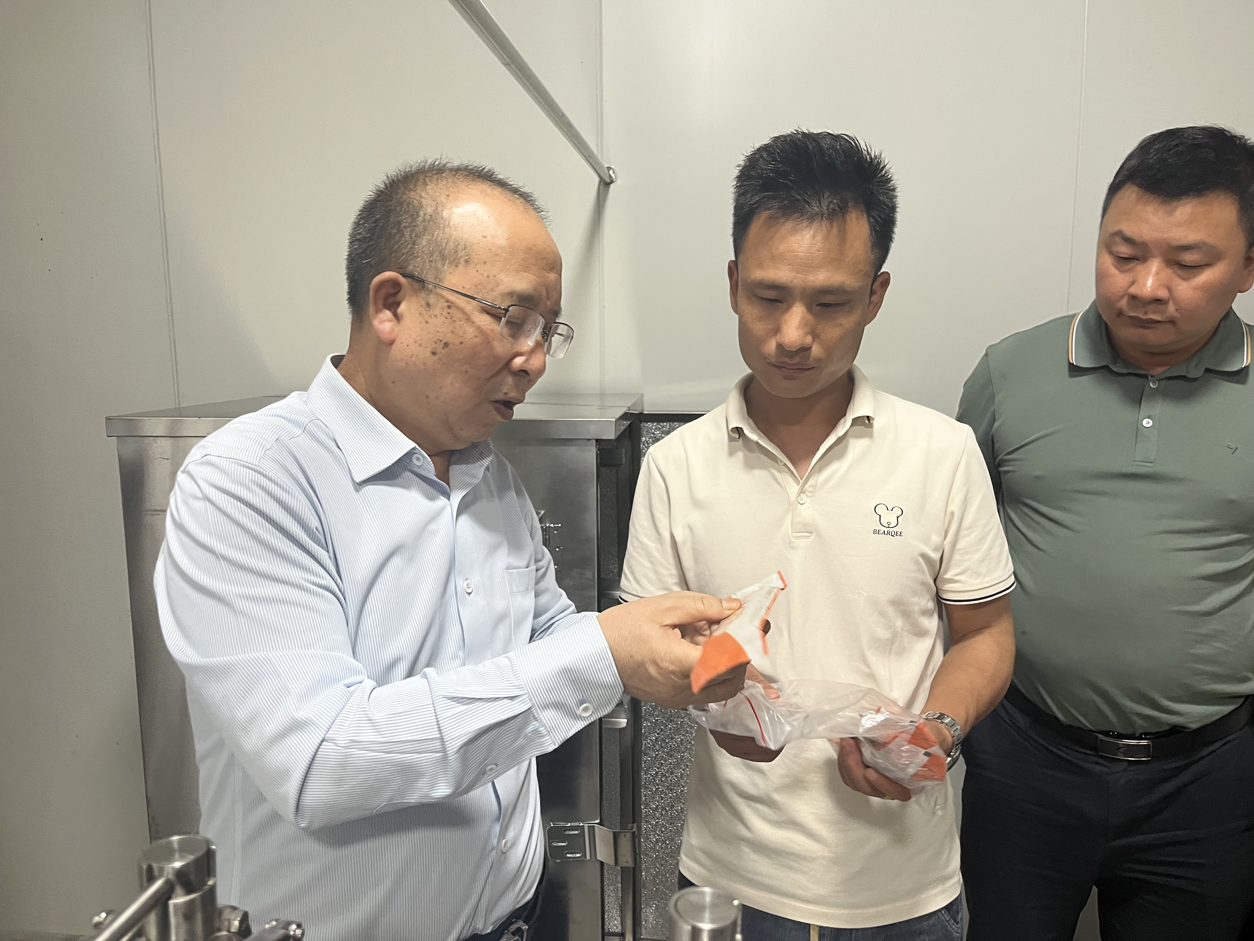 在“头雁”学员张信涛的千思语蜂业有限公司养蜂基地,曾志将仔细查看了蜜蜂饲养及蜂蜜加工情况,免费赠与了自主研发的蜂蜜后成熟功能柜、强蜂素挂片等装备,现场讲解了蜜蜂养殖和蜂蜜加工的技术关键点,针对学员提出的问题进行现场解答并提出了建设性意见,同时殷切嘱托学员要加强蜂农之间的合作交流,充分发挥“头雁”领航作用,增强“辐射联动力”。导师团还来到上饶金嘉隆茶叶有限公司、铅山县春平水稻种植专业合作社、江西凌恒生态农业科技有限公司等地,深入厂房、走进田间对学员进行帮扶指导。