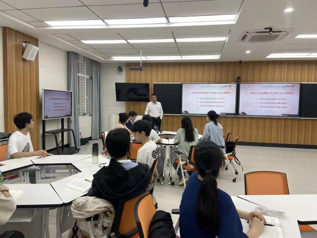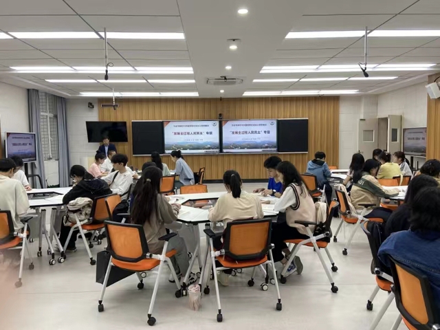 何元琴结合学校老旧小区改造从决策到实施的过程,生动讲述学校老旧小区改造践行全过程人民民主,实现过程民主和成果民主、程序民主和实质民主、直接民主和间接民主、人民民主和国家意志的统一,让同学们进一步认识到我国全过程人民民主的鲜明特色和巨大优势。