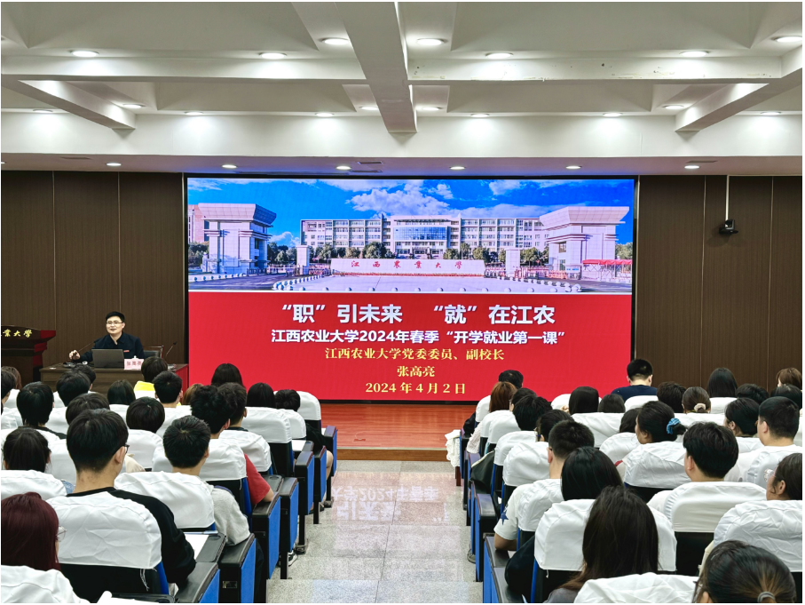 4月2日上午,校党委委员、副校长张高亮在校办公楼一楼报告厅开展以《“职”引未来,“就”在江农”》为题,为动物科学技术学院200余名学生讲授了一堂别开生面的“开学就业第一课”。