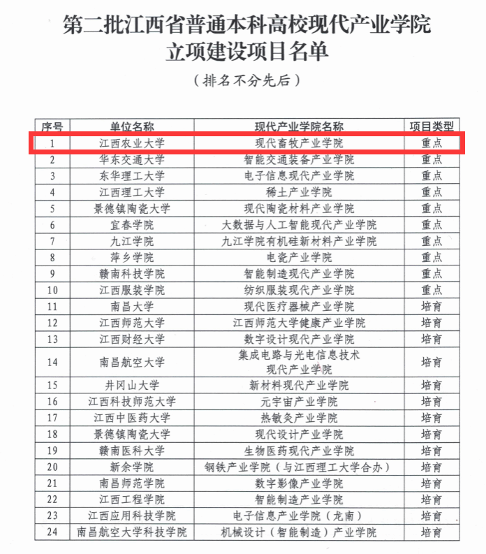 近日,江西省教育厅发布《关于公布第二批江西省普通本科高校现代产业学院立项建设项目名单的通知》,ac米兰“现代畜牧产业学院”入选第二批普通本科高校现代产业学院立项建设重点项目。此次成功入选,标志着ac米兰在产教融合、校企协同培育高层次人才的发展战略中取得新突破。