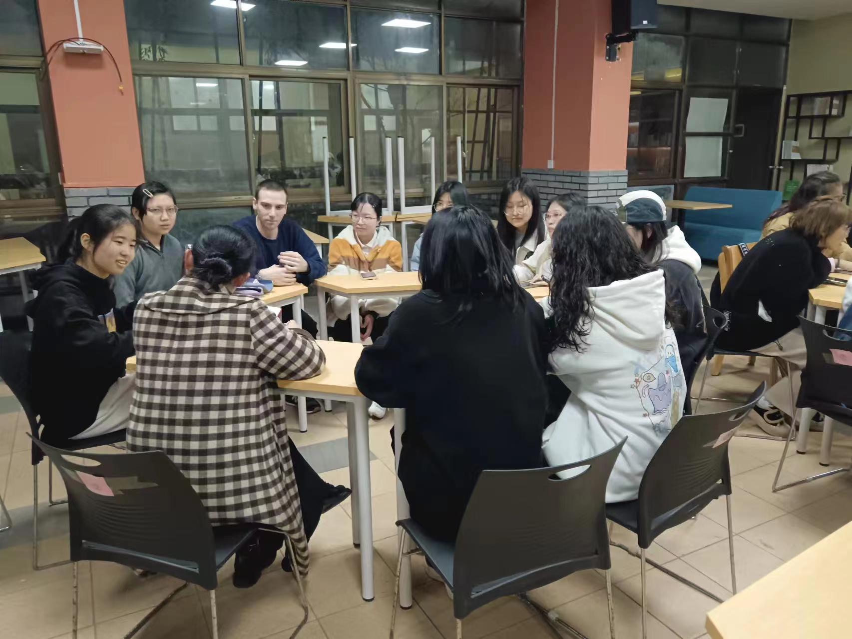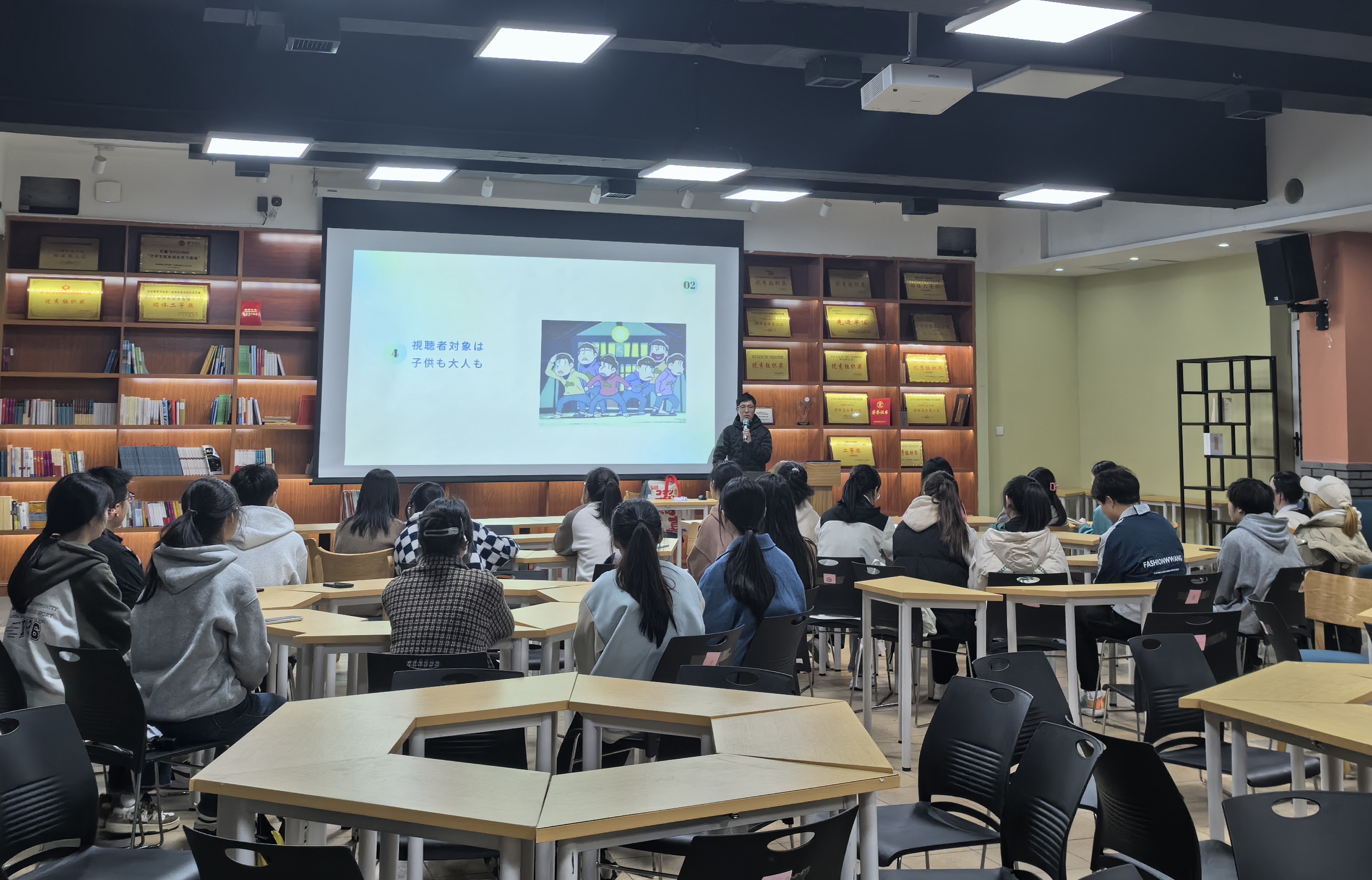 3月15日,日本籍外教金武伸治老师在交流活动中,首先向同学们展示了日本多样的动漫文化,并分析了动漫文化特征、发展原因与历史等。在互动环节,师生一起猜动漫、玩日本的“双六”游戏,并交流了自己的爱好、理想等多个话题,现场氛围融洽。