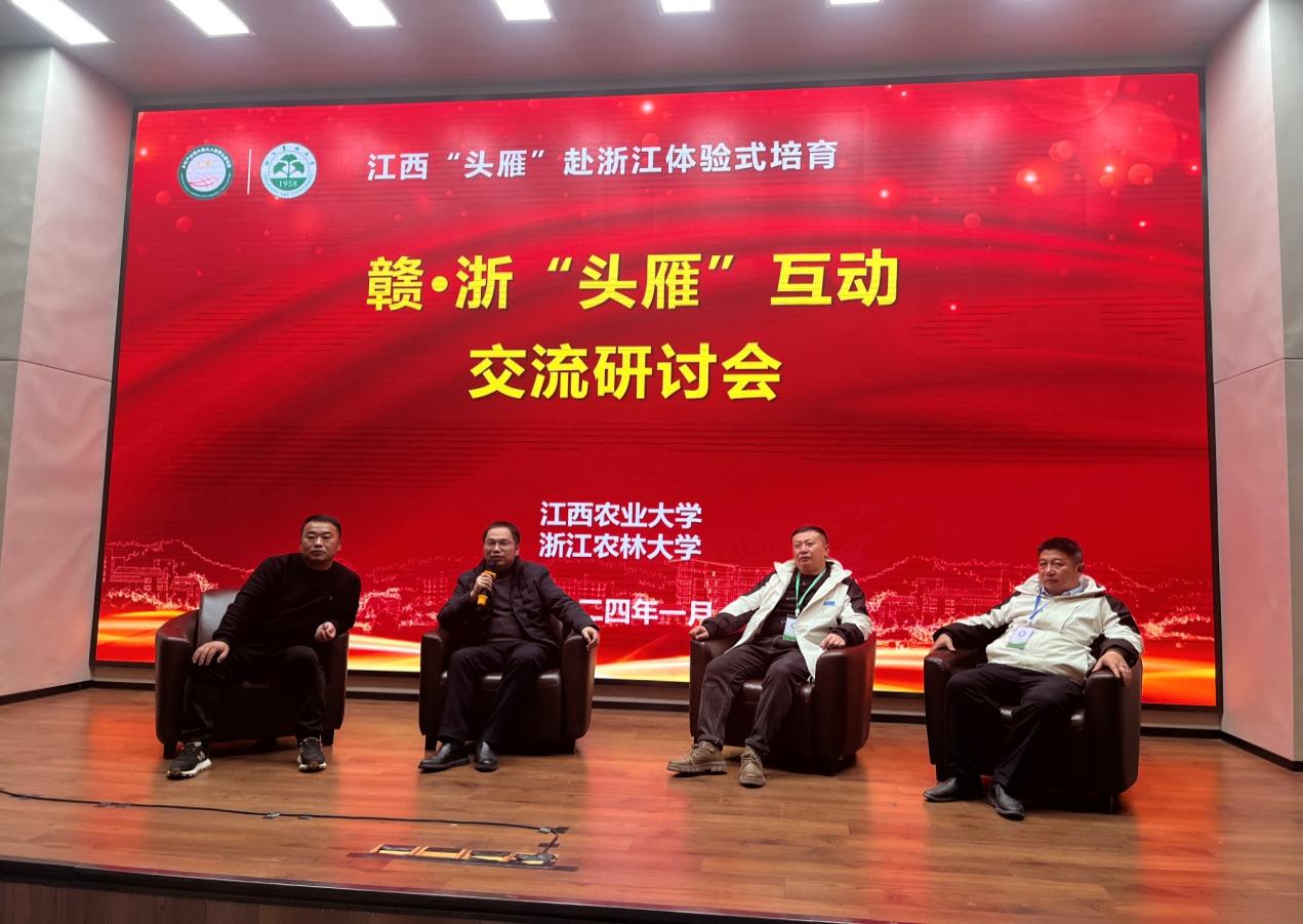 为加强赣浙两省“头雁”学员交流,1月25日晚,赣浙两省110名“头雁”学员之间召开了赣浙“头雁”互动交流研讨会。两省“头雁”学员齐聚一堂共商乡村振兴发展良策,分别围绕各自的产业以及乡村产业与乡村运营管理等方面开展了深入的互动交流,现场氛围十分热烈。