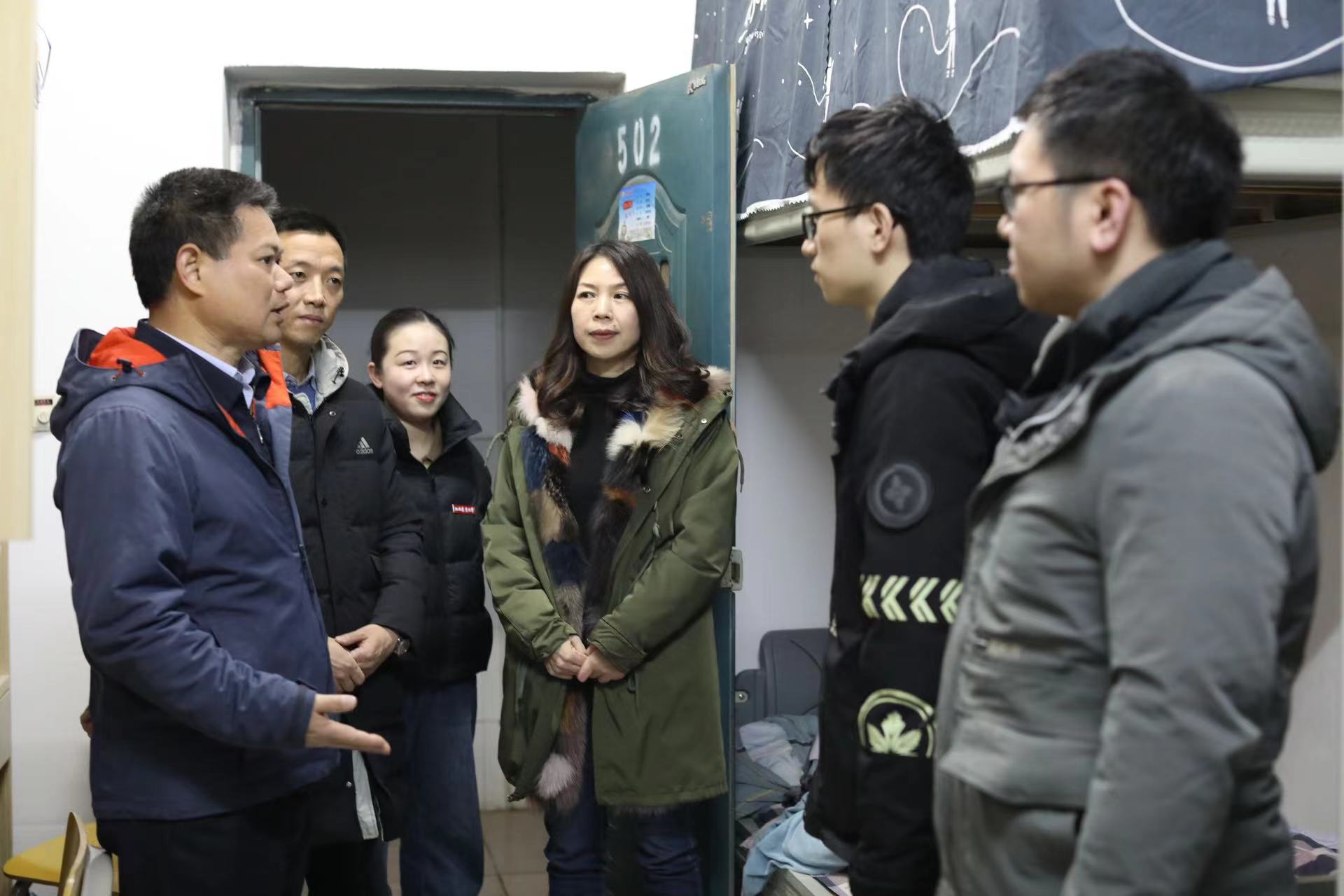 1月25日晚,校党委副书记蔡海生在学工部负责人和相关学院辅导员的陪同下深入学生宿舍走访慰问在校学生,实地了解学生的学习生活情况。