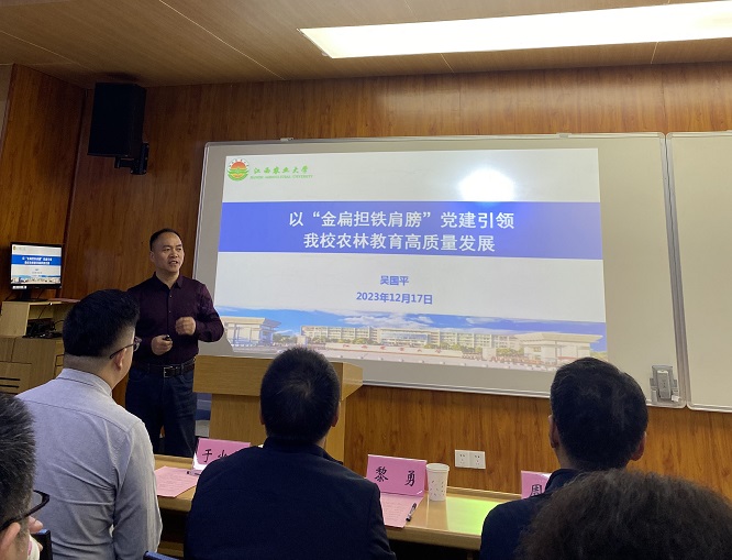 当日,四校党支部一同参观江财校史馆。随后,四校党支部齐聚江财用友楼,结合自身工作实际,围绕党建引领业务的经验做法进行交流分享。ac米兰机关党委第七支部书记、教务处主要负责同志《以“金扁担铁肩膀”党建引领ac米兰农林教育高质量发展》为题作专题报告,就新时代赋予农林教育的新使命、农林教育拔尖创新人才培养面临的新挑战以及拔尖创新人才自主培养的“江农”探索与实践三方面进行了大会汇报。其他高校的教务处长及教师代表分别围绕双融双育、高等教育数字化与课程新生态融合等主题作专题报告。