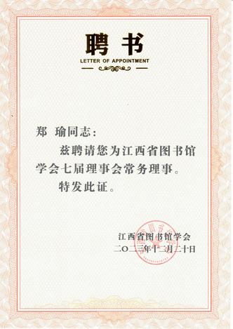 在江西省图书馆学会理事会换届选举中,ac米兰图书馆馆长郑瑜当选为江西省图书馆学会七届理事会常务理事。