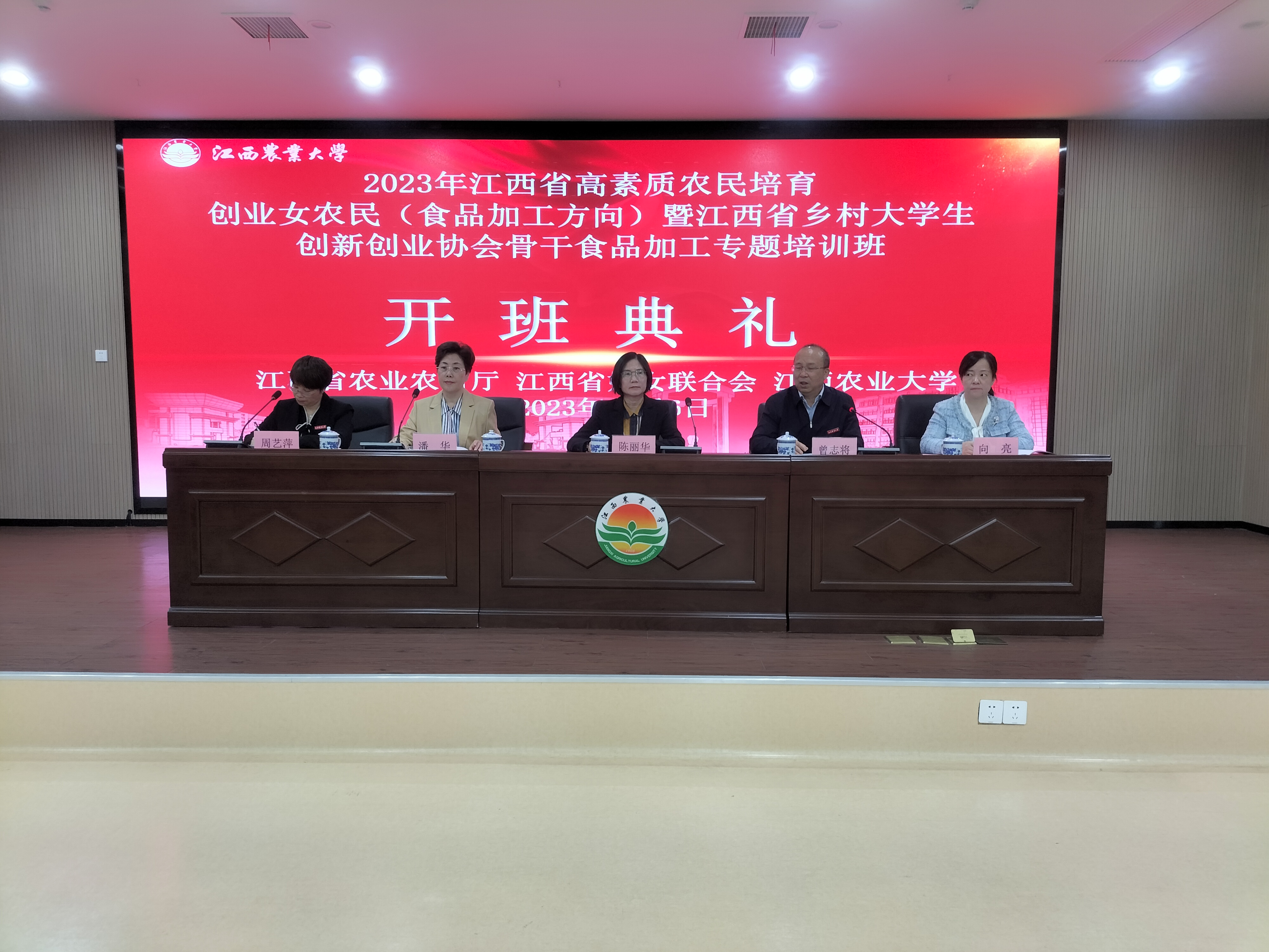11月6日上午,2023年江西省高素质农民培育“创业女农民”暨乡村大学生创新创业协会骨干“食品加工专题”培训班开班典礼在ac米兰举行。江西省妇女联合会党组成员、挂职副主席陈丽华,校党委委员、副校长曾志将,江西省农技推广中心科技教育与宣传处处长潘华,江西省妇女联合会发展部部长向亮、副部长简海出席了开班典礼。来此全省220余名参训学员将在ac米兰进行为期12天的培训。