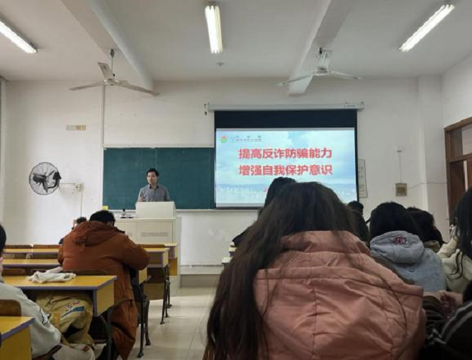 11月14日下午,林学院/园林与艺术学院邀请南昌市公安局电信网络犯罪侦查支队徐加明警官来院开展“珍爱生活•远离电诈”主题讲座,学院近一千名师生在学校大礼堂聆听了报告。