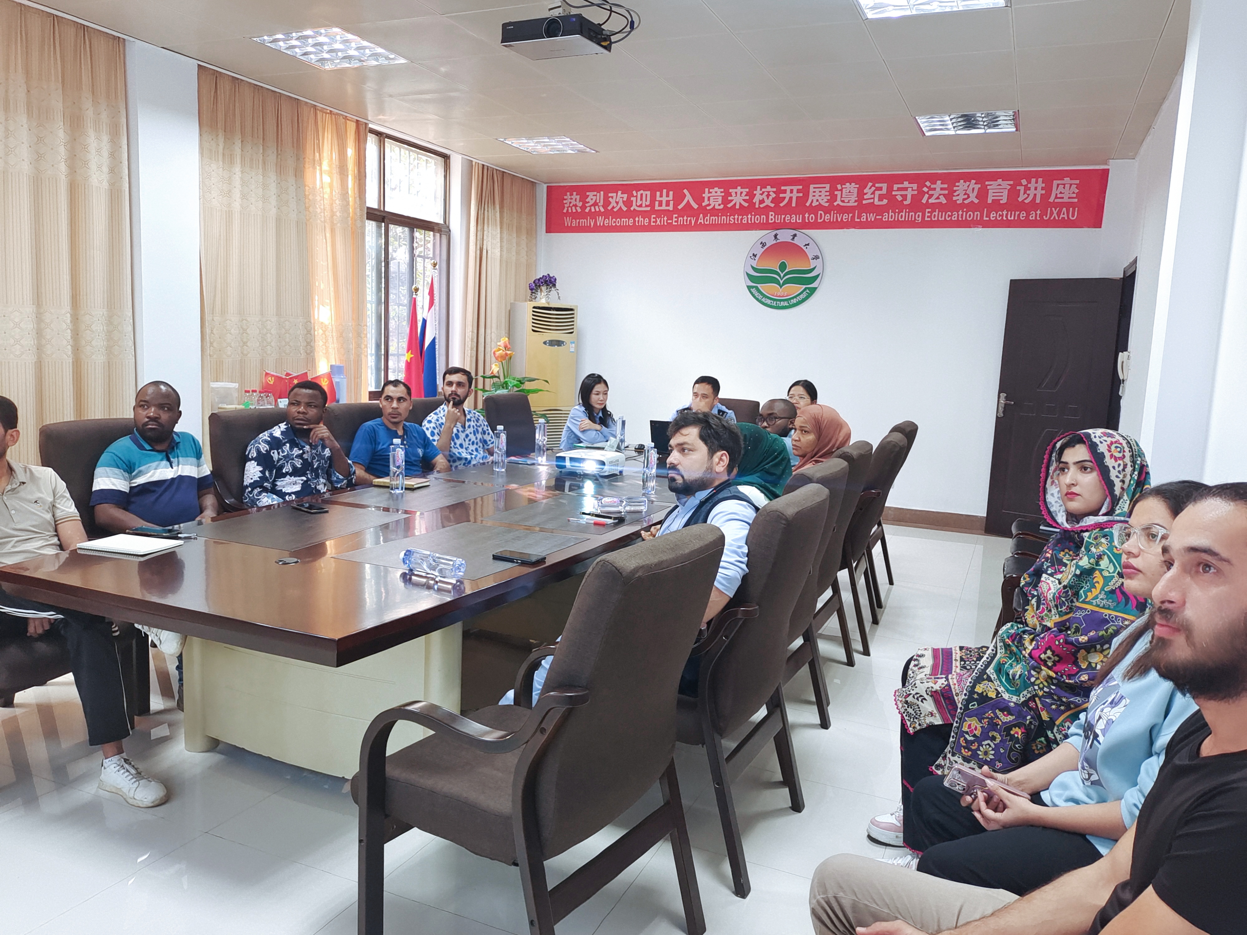 座谈结束后,出入境警官为全体留学生、外籍博士后举办了遵纪守法专题讲座,从中国移民执法、护照和签证、住宿、就业、宗教和安全等方面进行政策讲解,并结合典型事例,详细介绍了外国留学生在中国应遵守的法律法规和注意事项,并耐心解答了留学生提出的问题。