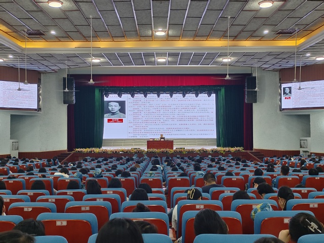 9月26日,外国语学院举办红色主题党课,南昌师范学院副院周毛春应邀以《从革命先辈的英雄事迹看共产党人的初心使命》为题,为师生们授课。外国语学院80余名教师及840名学生到场聆听