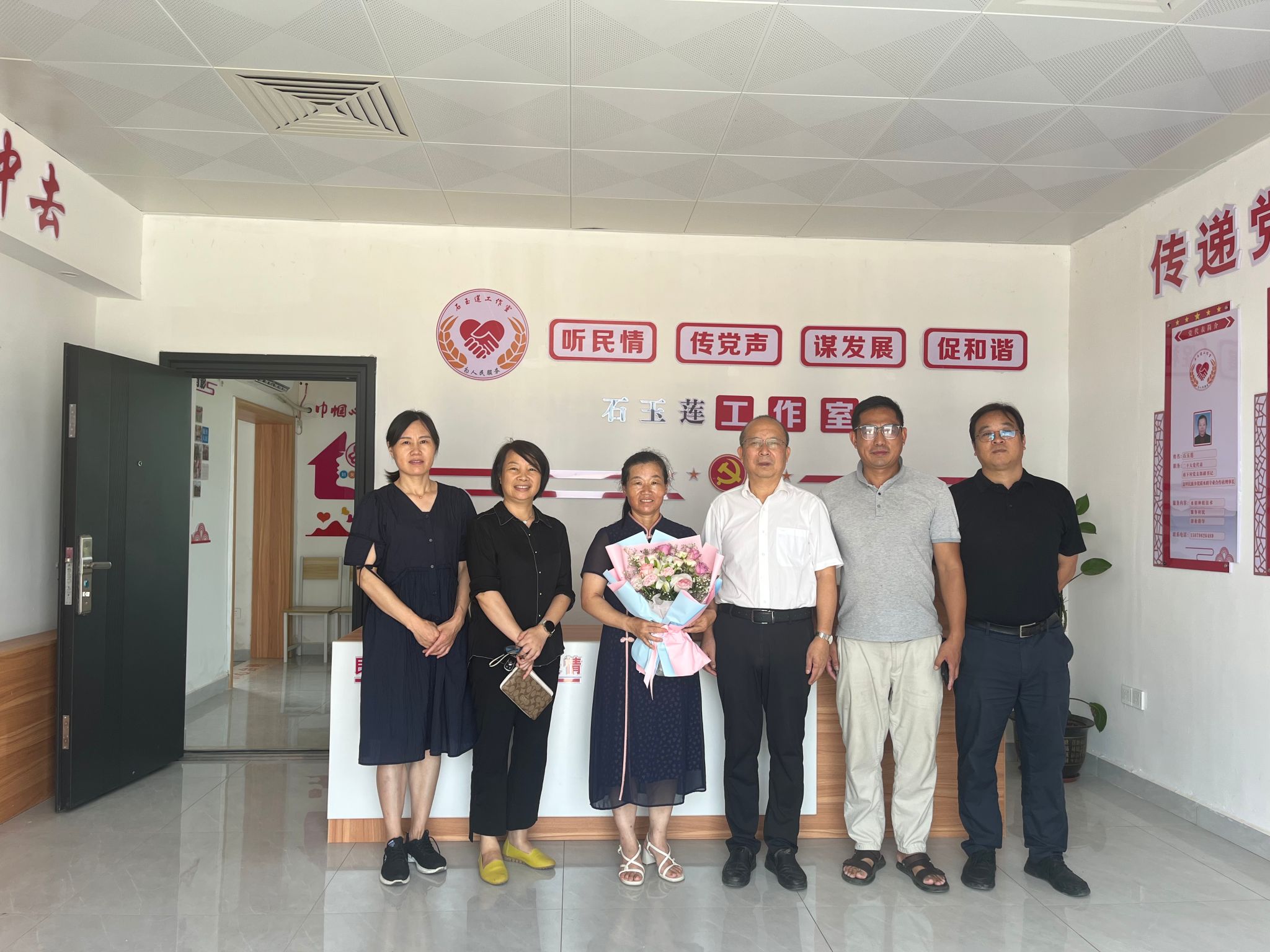 曾志将代表学校给三位优秀校友分别送上了鲜花和校徽礼盒,走访团与校友合影留念,并与他们一一座谈交流,表达母校的问候与牵挂,关心他们的发展情况,赞扬他们是母校的骄傲,希望他们关注和助力母校发展,始终与母校保持密切联系;邀请他们回母校参加创新创业论坛,分享创业经历和工作经验,并邀请他们参与校庆活动。石玉莲校友深切感慨“没有母校的栽培,就没有我的今天”;李国华校友表示,做农村工作一定要有情怀,要始终心系群众,工作才能持久得到群众的支持;邹伟校友惊喜于母校的走访,感激之情溢于言表。