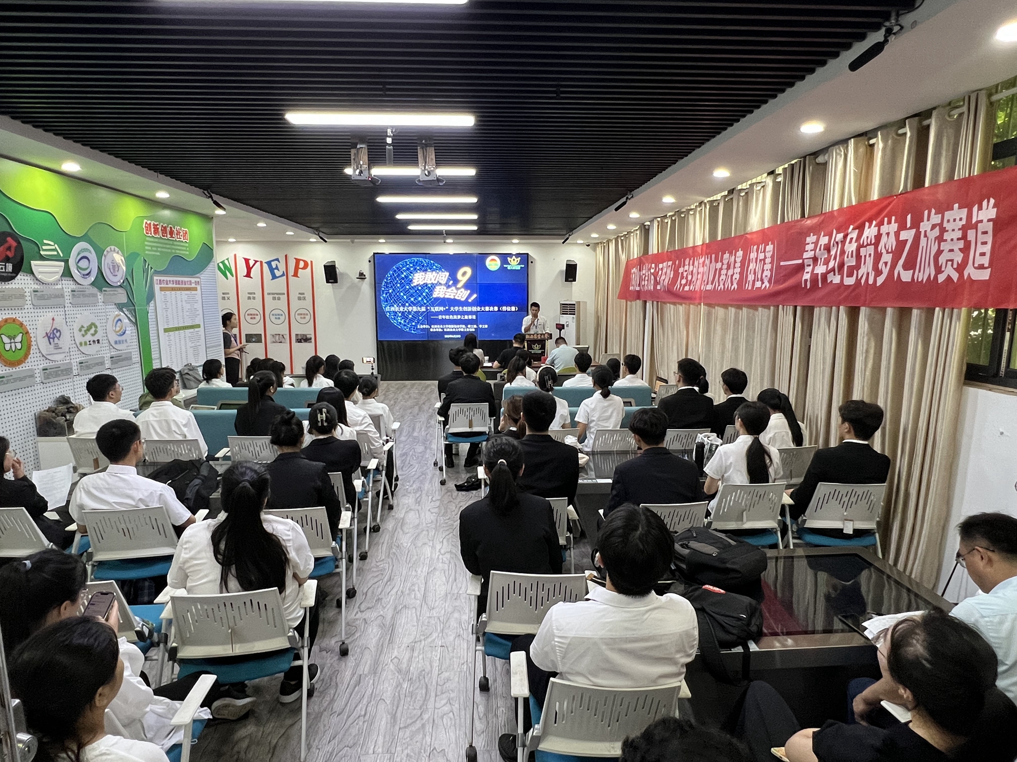 6月25日,学校第九届“互联网+”大学生创新创业大赛校赛决赛(排位赛)在“惟义青创园”举行,副校长贺浩华出席活动,并为专家代表授予大学生创新创业导师聘书。本次大赛由创新创业学院、研工部、学工部主办,惟义青创社承办,特邀6名大赛资深评审专家担任评委,经学院初赛、校赛网评遴选出的27个“高教组赛道”项目、22个“青年红色筑梦之旅赛道”项目分组角逐校赛排位,300余名师生代表到场观摩。