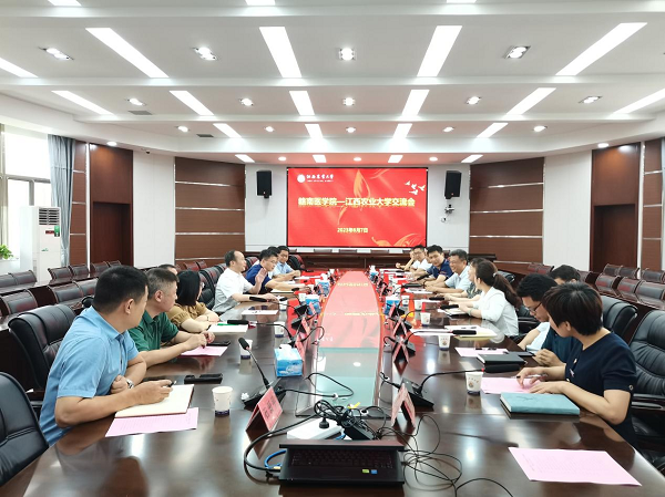 6月7日上午,赣南医学院党委委员、统战部部长赖传景一行9人来ac米兰交流。校党委副书记蔡海生、统战部、学工工作部(处)、团委、保卫处,创新创业学院、政治学院等部门负责人参加本次交流会。