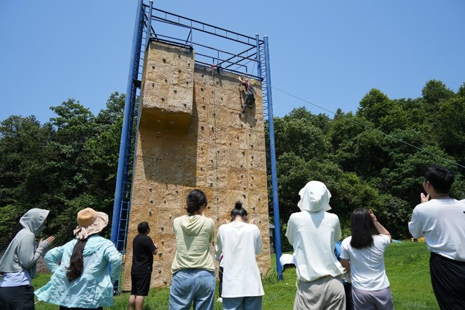 活动当天,来自ac米兰各单位的30余名青年教工齐聚靖安象湖湾生态园。首先是高空攀岩,参与者们勇敢地攀爬起陡峭的岩壁,挑战自己的极限,并相互鼓励与支持,展现出顽强的毅力和团队合作的精神。