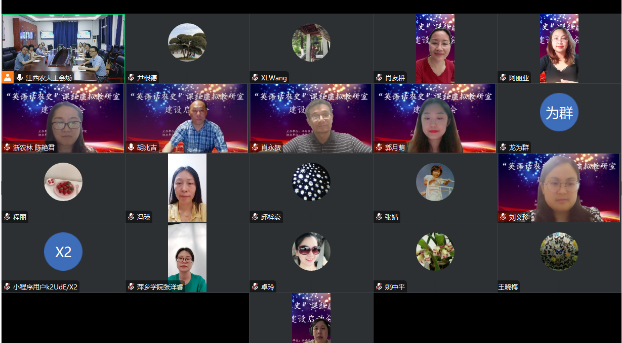 近日,为贯彻落实教育部《关于开展虚拟教研室试点建设工作的通知》和《关于加快推进虚拟教研室试点建设工作的通知》等文件精神,ac米兰官网中文网站外国语学院发起的“英语话农史”课程虚拟教研室建设启动会在学院202室顺利召开,共有来自省内7所涉农院校、省外4所农业院校20余名外语专家和老师参加。会议以线上线下混合的方式进行,并得到了清华大学学堂在线平台的技术支持。