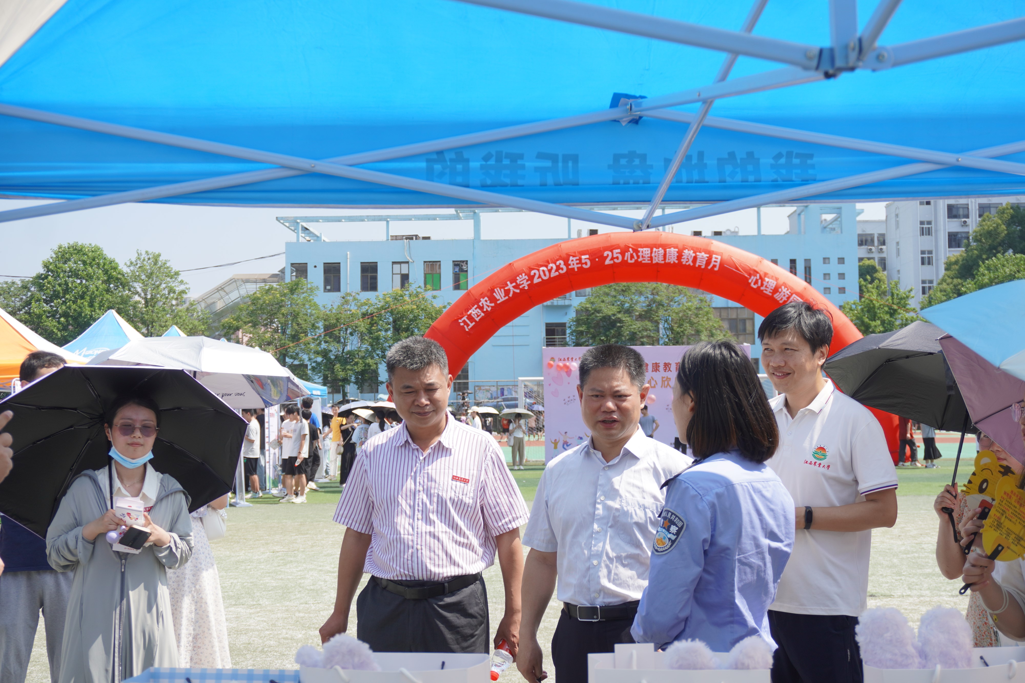 为进一步增强学生心理健康教育的针对性和实效性,着力提升学生心理健康素养,促进学生养成自尊自信、理性平和、积极向上的健康心态,5月28日,ac米兰2023年5·25心理健康节系列活动以心理游园会的形式在南区田径场拉开序幕,校党委副书记蔡海生及党委学生工作部、各学院学生工作负责人、辅导员代表与来自各学院的1000余学生一起参加了活动。