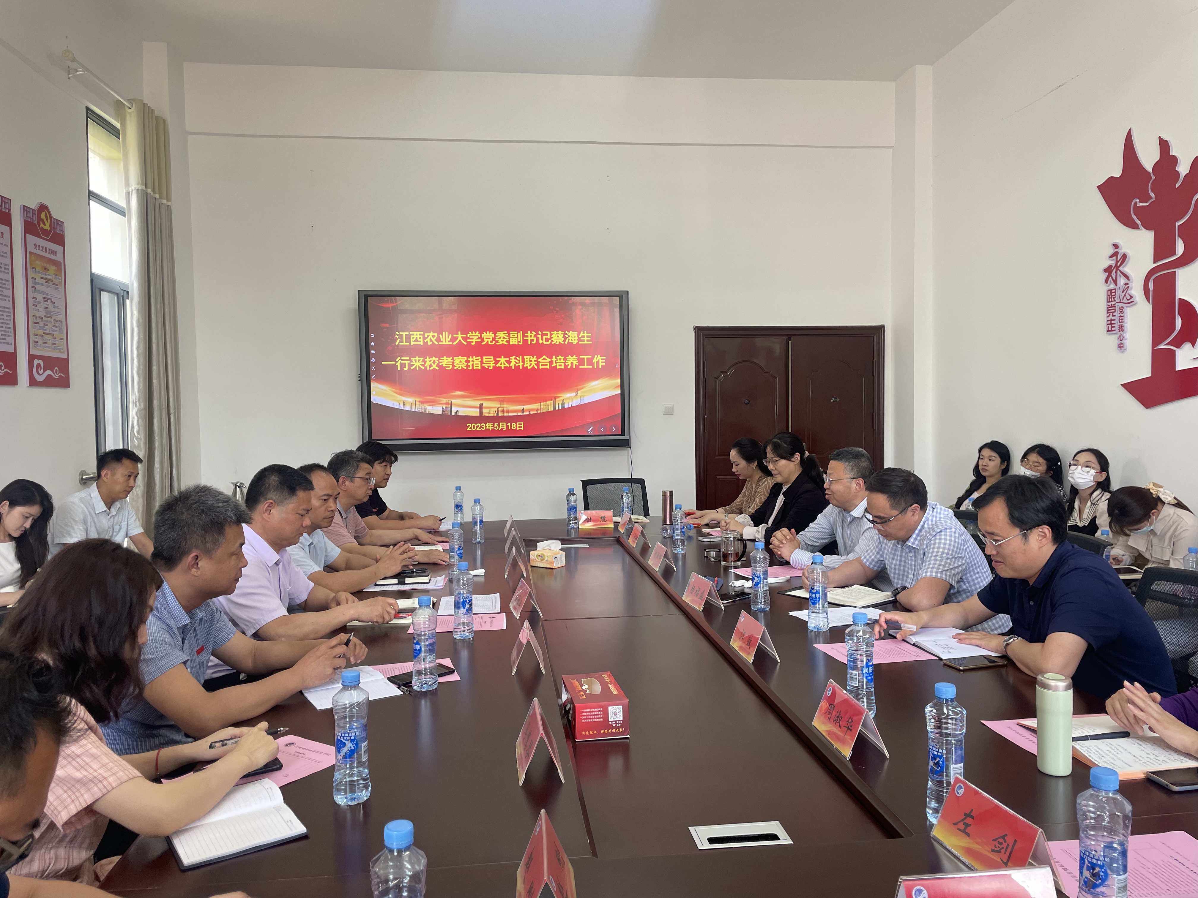 为推动主题教育活动走深走实,深入开展调查研究,5月19日,校党委副书记蔡海生在教务处、招生就业处、学工部及国土学院、外国语学院、经济管理学院等单位主要负责人陪同下,赴江西旅游商贸职业学院开展专升本人才培养与管理及就业工作调研交流。江西旅游商贸职业学院副院长杨福盛主持调研交流会。