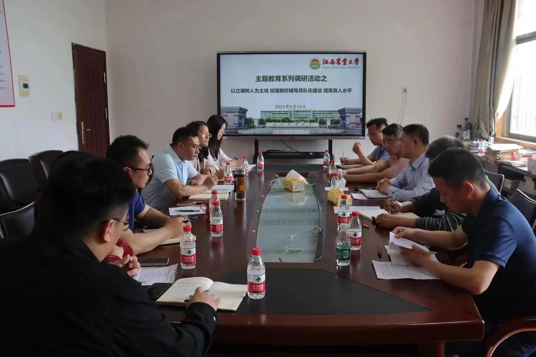 为积极响应学校深入开展学习贯彻习近平新时代中国特色社会主义思想主题教育的要求,全面贯彻落实党的二十大精神,5月14日上午,校党委副书记蔡海生深入东区辅导员工作室、东区“金扁担”学生“一站式”服务大厅、经管学院、软件学院开展调查研究,校党委组织部、党委学生工作部、招就处部门负责人,软件学院和经济管理学院党委负责人、以及辅导员代表参加,组织开展了题为“以立德树人为主线,加强ac米兰辅导员队伍建设,提高育人水平”的调研会。