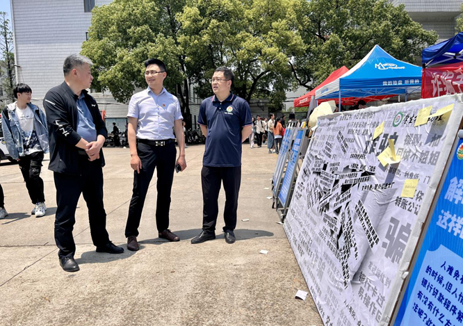 5月9日,保卫处联合学校校长助理学生团队在北区和南区食堂门口开展全民反诈主题宣传活动,校党委委员、副校长张高亮出席,并在现场指导工作。