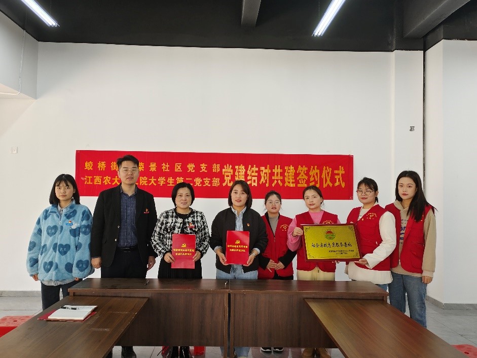 为深入学习贯彻习近平新时代中国特色社会主义思想,进一步提升实践育人质量,引导大学生积极参与社区基层治理、服务群众,立志做有理想、敢担当、能吃苦、肯奋斗的新时代好青年,4月26日,生物科学与工程学院大学生第二党支部与经开区荣景社区举行大学生社区实践、支部共建签约仪式。
