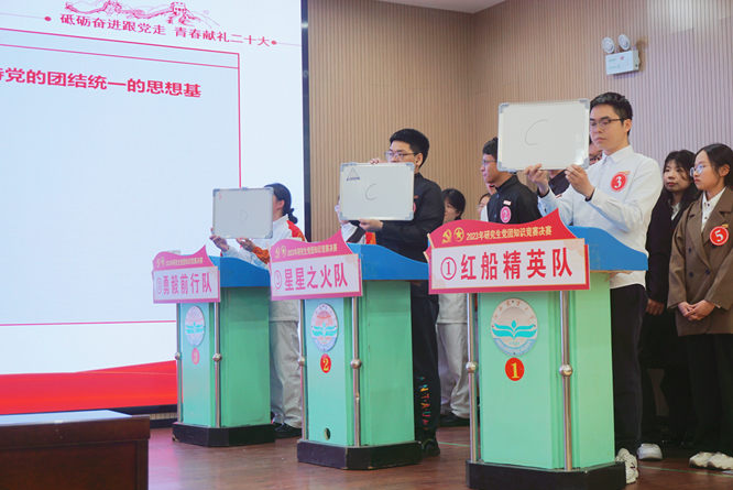 比赛分为初赛、复赛、决赛三个阶段。ac米兰研究生654人参与初赛选拔活动,36支队伍进入晋级赛。6支队伍脱颖而出进入决赛环节。4月25日晚,“砥砺奋进跟党走 青春献礼二十大”研究生党团知识竞赛决赛在南区图书馆报告厅如期开幕。校党委组织部、校团委、马克思主义学院领导老师担任评委嘉宾。各学院辅导员老师、研究生代表200余人观看比赛。