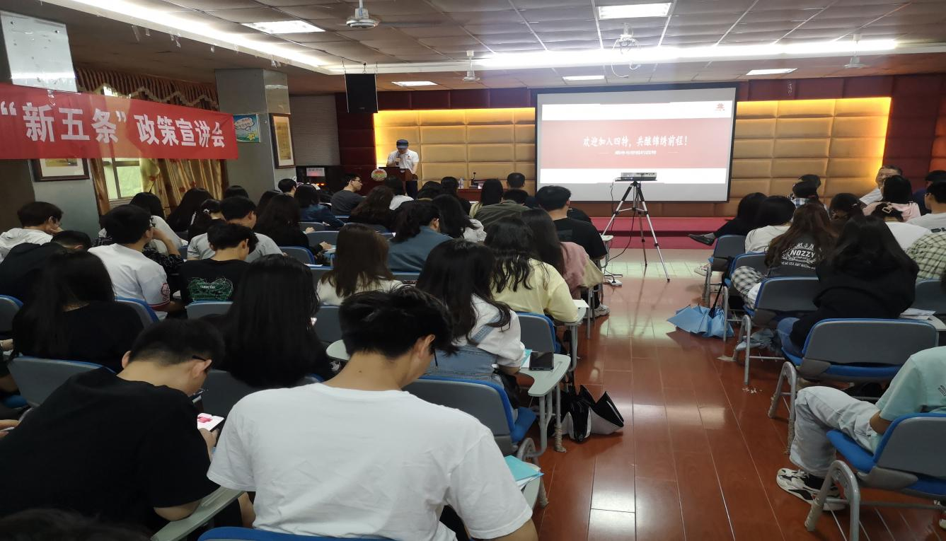 4月18日下午,樟树市委常委、组织部部长金小明一行来校开展樟树市招才引智“新五条”政策宣讲会。樟树市有关部门负责人、部分优质企业代表,招就处负责人及相关学院就业工作人员、2023届毕业生代表等近130人参加了此次活动。