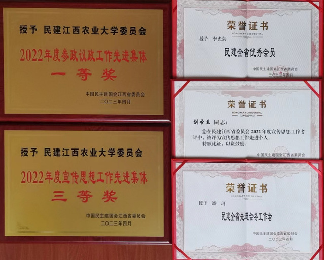 近日,民建江西省委会发文,对全省优秀会员、先进会务工作者和先进集体等进行了表彰。民建ac米兰官网中文网站委员会荣获2022年度全省参政议政工作先进集体一等奖、2022年度宣传思想工作先进集体三等奖,会员潘珂荣获民建省先进会务工作者称号,会员李光泉荣获民建全省优秀会员称号,会员刘圣兰荣获宣传思想工作先进个人称号。