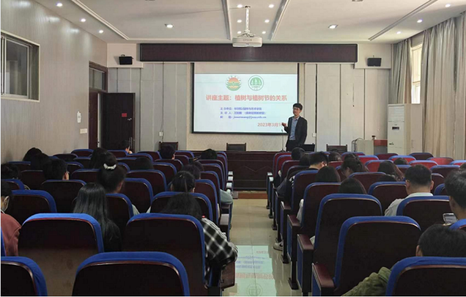 3月10日上午,青年教师汪加魏博士围绕植树节开展了专题知识讲座。他从为什么要植树造林、植树造林技术要点、植树造林的机械化与智能化、全民义务植树运动功绩等方面的内容进行了详细阐述,鼓励同学们要厚植林学情怀,发扬塞罕坝精神,贯彻绿色发展理念,共建绿色美丽家园。