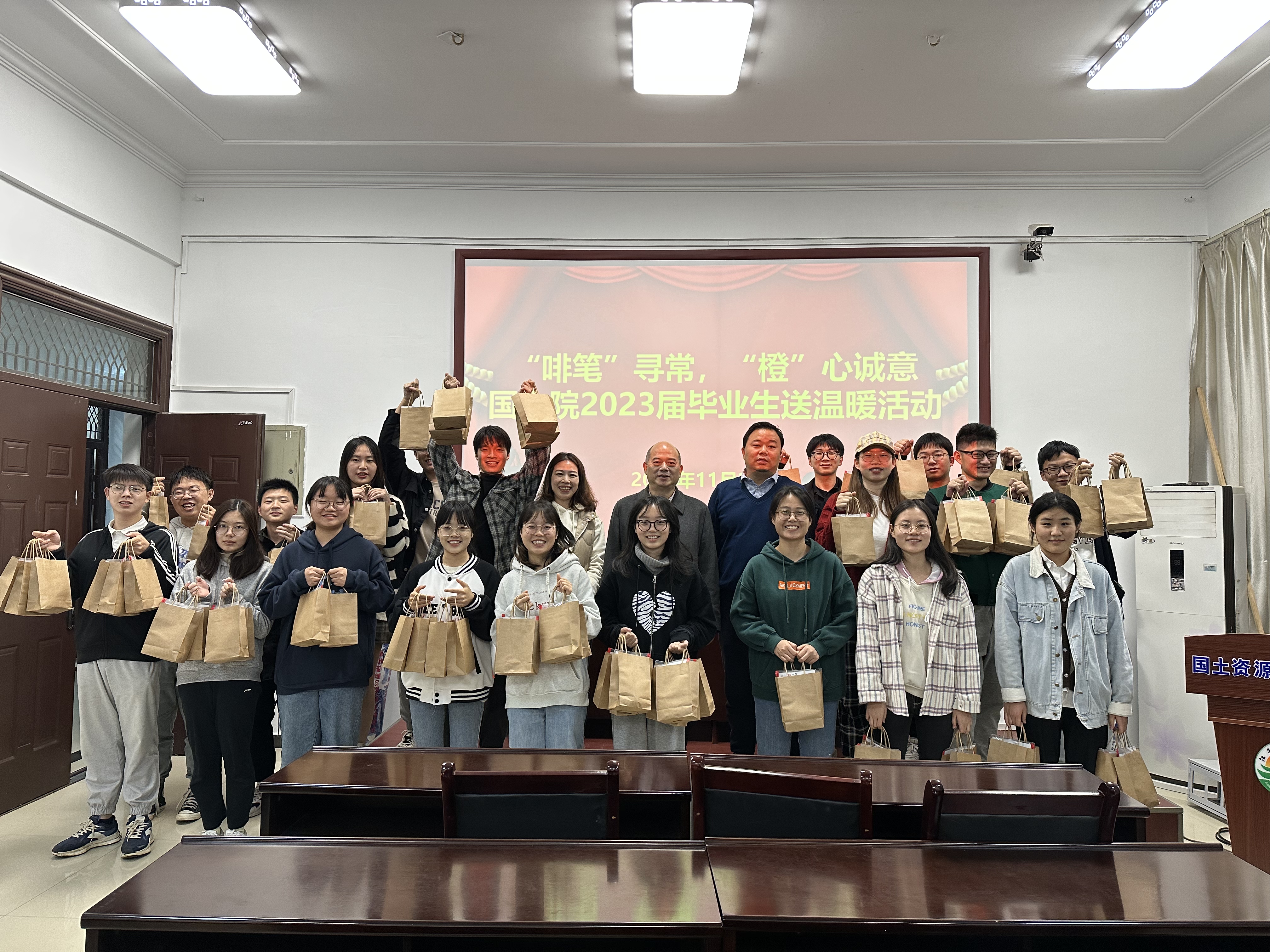 当前正值考研冲刺和求职的关键时期,为适度缓解毕业年级同学压力,给毕业学子加油鼓劲,11月22日下午,国土学院“‘啡笔’寻常,‘橙’心诚意”就业送温暖活动温情开展。学院领导班子、全体毕业班班主任,团委、学工办全体老师线上线下为2023届毕业生送上温馨祝福、温暖礼物。