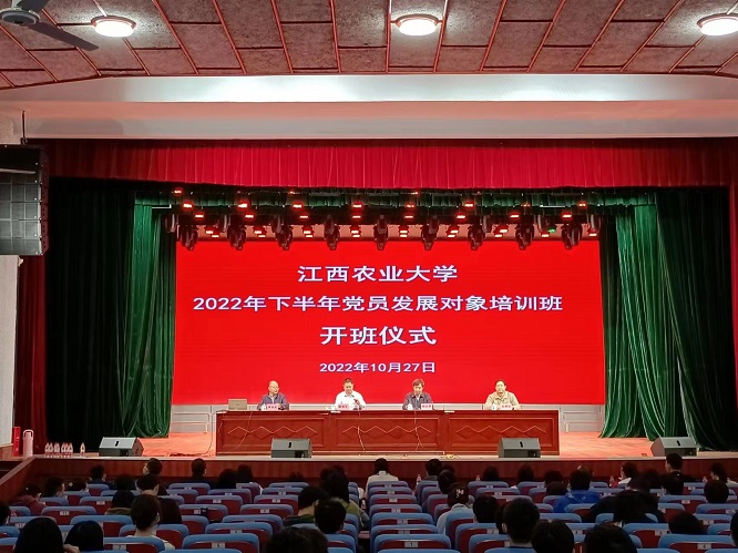 10月27日晚,发展对象培训班开班仪式在大礼堂举行。校党委副书记、党校校长蔡海生出席开班仪式并讲话。他指出,一要高度重视,充分认识发展对象教育培训的重要意义。举办发展对象培训是发展党员的必经程序,是提高能力素质的需要,是确保党员发展质量的需要。要通过此次培训,深刻认识共产党员的责任和使命,真正做到在思想上完全入党,为下一步组织上入党打好思想基础。二要把握要求,确保取得良好的培训效果。要把握学习的重点内容,发扬刻苦钻研的精神,弘扬理论联系实际的学风,通过学习努力加强党性修养,不断提升自己的思想素质,道德情操和实践能力。三要全面提高,争取早日成为一名光荣的共产党员。要坚定理想信念,勇于担当实干,提高素质本领。要带头弘扬勤学苦练、严谨求实的学风,勤奋学习专业知识,刻苦训练专业实践技能,积极开展新时代“双创”实践活动,带领同学共同进步;要积极践行社会主义核心价值观,积极开展创建文明班级、文明宿舍、文明课堂活动,养成勤俭节约的美德和良好的生活习惯,在自我教育、自我管理、自我服务、自我监督上作表率;教师发展对象要教书育人,潜心科研,积极参与“双一流”建设和科技兴农服务,争创一流业绩,为学校的发展作贡献。