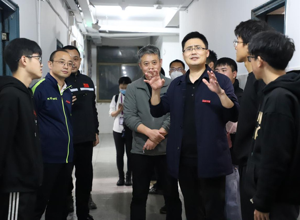 张高亮一行首先向同学们表达了学校领导和老师们对同学们的关心和关爱,与同学们进行亲切交谈和互动,深入了解了同学们关于学习、生活的想法与诉求,就同学们关心的各项事务展开充分交流,积极协调指导,为同学们上了一堂别开生面的安全教育与职业生涯规划课。张高亮一行希望大家提高思想站位,树立大局意识和全局意识;严格遵守学校相关规定提高安全防范意识,注意用电安全、谨防电信诈骗;加强时间管理、注重个人身心健康,养成良好的学习和生活习惯;学生干部发挥桥梁纽带作用,与班主任、辅导员老师们保持密切联系,遇到困难要及时反馈,进行积极有效的沟通交流。