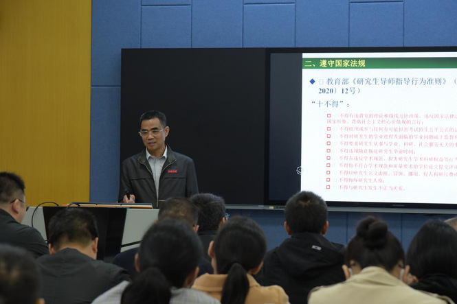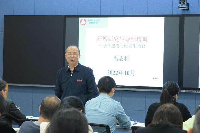 为加强研究生指导教师队伍建设,提升研究生导师的指导能力和业务水平,全面落实导师立德树人职责,近日,学校在致达楼智慧教室举办了2022年度新增研究生导师培训会。校党委委员、副校长曾志将教授出席会议并作主题报告。