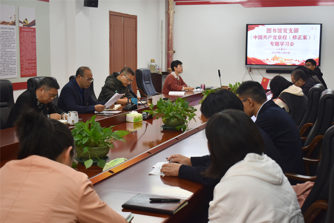 11月8日下午,为深入学习宣传贯彻落实党的二十大精神,图书馆党支部在党员之家召开党的二十大《中国共产党章程(修正案)》专题学习会,全体党员参加了会议。