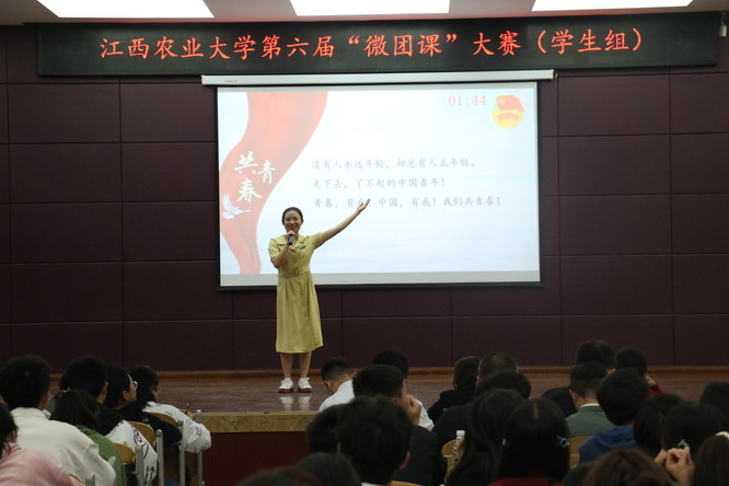 本次比赛现场氛围浓厚热烈,参赛选手们紧扣“学习二十大、永远跟党走、奋进新征程”微团课主题,围绕党团理论知识、国史国情、时事热点、红色故事、青年的责任与担当等角度开展《百年团史之赣鄱青年》、《你经得起考验吗》、《共青春》等主题团课。综合运用课堂教学、ppt演示、案例讲解、视频音频等丰富多彩的形式,或将自身所教、所学的专业知识与大学生思想政治教育结合,或以人物经历、日常生活的小载体讲好时代大道理,把握“微”的形式、坚持“团”的导向、展现“课”的核心,为观众呈现了一堂堂精彩生动的微团课。