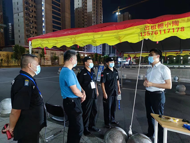 9月10日晚,副校长张高亮来到学校疫情防控卡口,检查督导中秋节疫情防控工作,并看望慰问一线保卫人员。保卫处负责人及工作人员陪同。