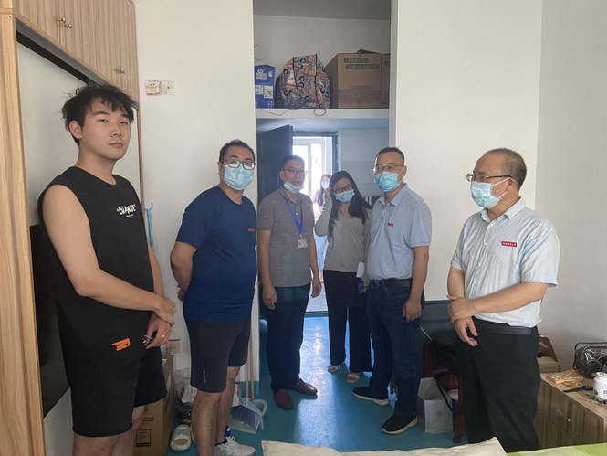 “你们都从哪里来?”“跟随哪位导师开展科研?”“本科在哪个学校就读?”在走访过程中,曾志将亲切地和新生们打招呼,仔细询问新生在校饮食以及住宿事宜等情况。