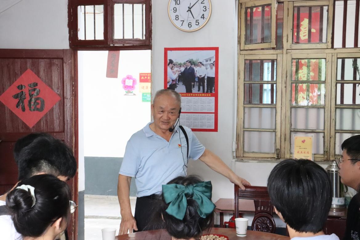 沿着习近平总书记考察路线,实践团队来到了梓山镇潭头村。在村口中心位置一座红旗形状的雕塑上面,豁然写着一行标语——“幸福都是奋斗出来的”。红军烈士后代、孙观发爷爷的家就在潭头村的入口处。2019年5月20日,习近平总书记带着对革命老区人民的牵挂,来到这里考察,同当地镇、村干部及孙观发一家围坐在一起拉家常。孙观发介绍,他在村里经营起“饮水思源”餐馆和超市,并将自家种的绿色蔬菜和养殖的土鸡、土鸭摆上桌,颇受游客们喜爱。除去用来直接招待游客,潭头村还开设网店,通过网络将绿色蔬菜和土鸡土鸭销往全国各地。2021年,孙观发一家的收入达到近20万元。曾经“梓山潭头,吃苦两头”,现在潭头村已经成为远近闻名的“三产融合”示范村。