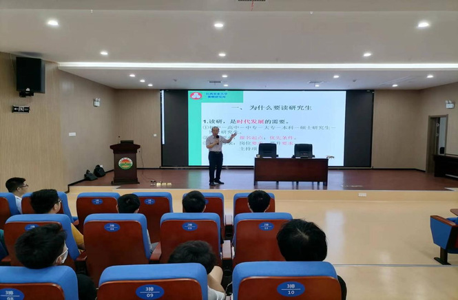 报告会特邀请曾志将副校长为考研学生作《为什么要读研究生》主题报告。曾志将从社会时代背景发展的需要、个人内在发展的需求、学校奖助体系的支持三个方面系统阐述了“为什么要读研究生”,并详细介绍了ac米兰研究生教育发展历史、学科特色、科研情况等,为现场学生作了一场精彩报告。