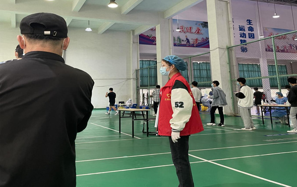 “我报名加入核酸检测服务岗,积极参与校园抗疫志愿工作,带头扛起使命责任、带头落实防疫要求,让党旗在疫情防控第一线高高飘扬。”本科生第二党支部党员肖鹂第一时间向支部书记报名。“同学你好,核酸检测要开始了,请佩戴好口罩尽快前往宿舍一楼进行排队,谢谢配合!”她已连续七次参加核酸检测引导工作,助力学院全员核酸检测高效完成。