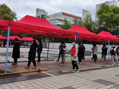 教师+学生,同心战疫。一个党员就是一面旗帜。学院师生党员、入党积极分子和党外人士等30余人,积极报名参加学校或当地社区的疫情防控志愿服务工作。19日上午,当保育院核酸检测点志愿者不足时,党员教师黄以胜立即到检测点报到。22日下午,党员教师罗巧顶风冒雨在南大门卡点参加志愿服务。25日上午,党外人士傅琼教授也积极到志愿服务点报到。研究生党员廖镇宇第一时间报名成为青年志愿者,在第一次全员检测中连轴转10小时到凌晨3点,在五轮核酸检测工作中累计在岗50余小时。他推送的“全网寻找‘大白’”、江农师生朋友圈等暖心新闻广受好评,并得到中央广播电视总台国际在线、江西卫视等权威媒体转发报道。研究生党员涂佳芸一直在负责疫情防控相关信息的统计工作。学院师生同心战疫,活跃在疫情防控志愿服务的第一线。