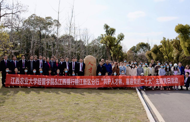 为提高党员爱绿护绿意识,进一步美化校园环境,3月10日下午,在第44个植树节即将到来之际,经济管理学院与江西银行共同开展“共护人才林,喜迎二十大”主题党日活动。