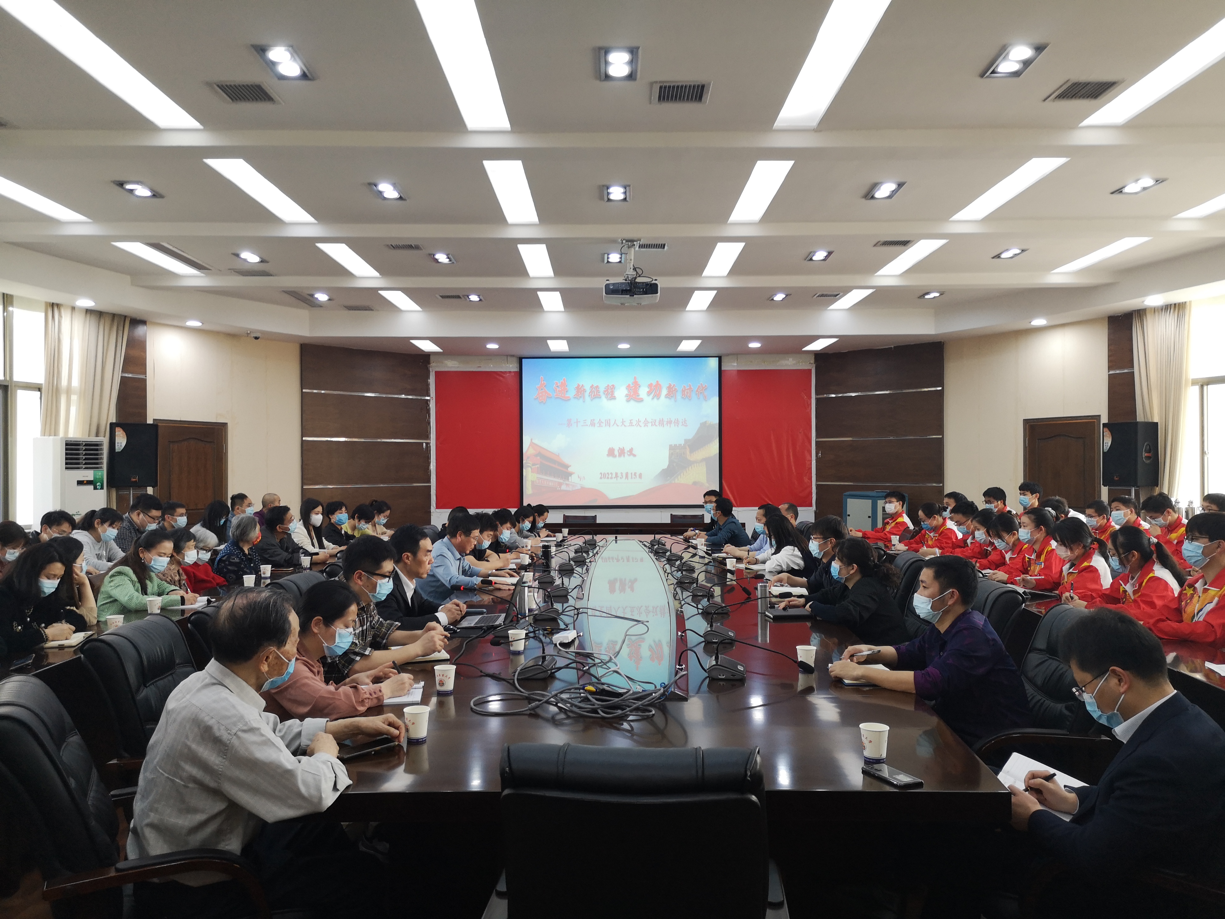 3月15日下午,由ac米兰官网中文网站机关党委、民革ac米兰官网中文网站委员会主办,ac米兰官网中文网站机关党委第七支部承办的“奋进新征程 建功新时代——十三届全国人大五次会议精神专题报告会”在校办二楼圆厅召开,机关党委各支部的党员代表、ac米兰官网中文网站民革党员、教务处全体教职工和惟义农学2001班全体同学参加学习,报告会由机关党委常务副书记周水平主持。