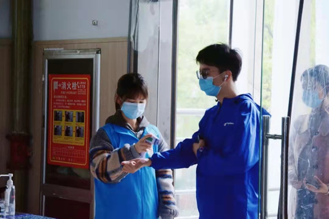 “你好,请配合测量一下体温。”