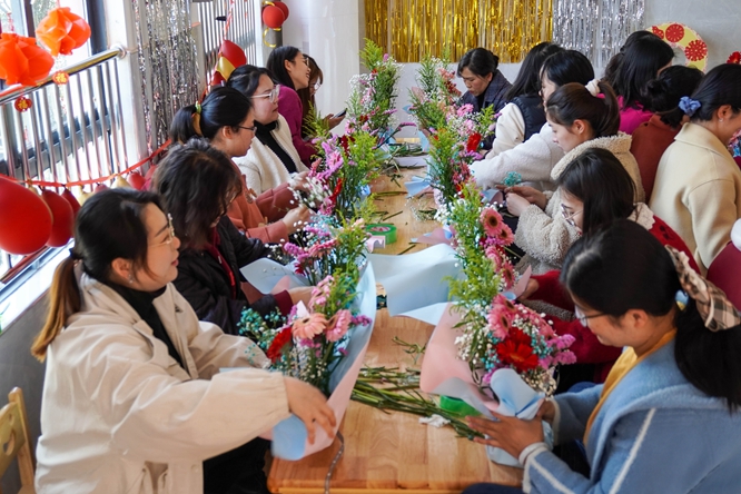 为丰富ac米兰官网中文网站机二分工会和保育院女教职工的节日文化生活,展示女老师们的风采,让女教师们过一个健康、快乐、难忘而有意义的节日,3月7日下午,机二分工会和保育院开展了“三八”妇女节插花活动。机关党委常务副书记周水平、机关党委副书记陈少卿应邀参加活动。
