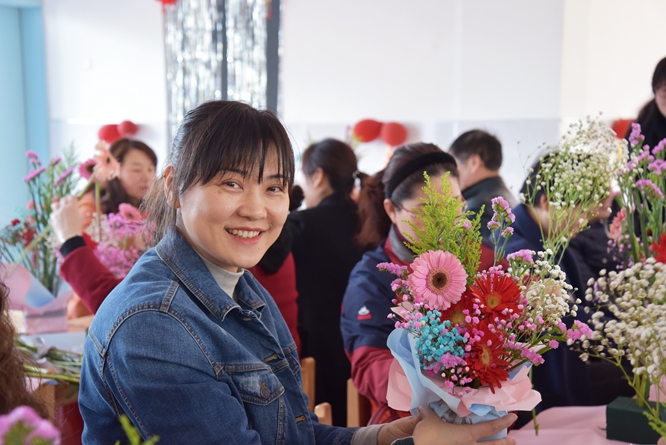 插花活动在温馨、愉悦的氛围中圆满结束。此次活动既让各位女教职工在感受美、欣赏美、创造美的过程中愉悦了身心,舒缓了压力,还让各位女教师增加了对插花这门优雅技艺的了解,提高审美情趣,在自己节日里收到一份意义非凡的礼物。活动结束后,全体人员纷纷与自己的作品合影留念。