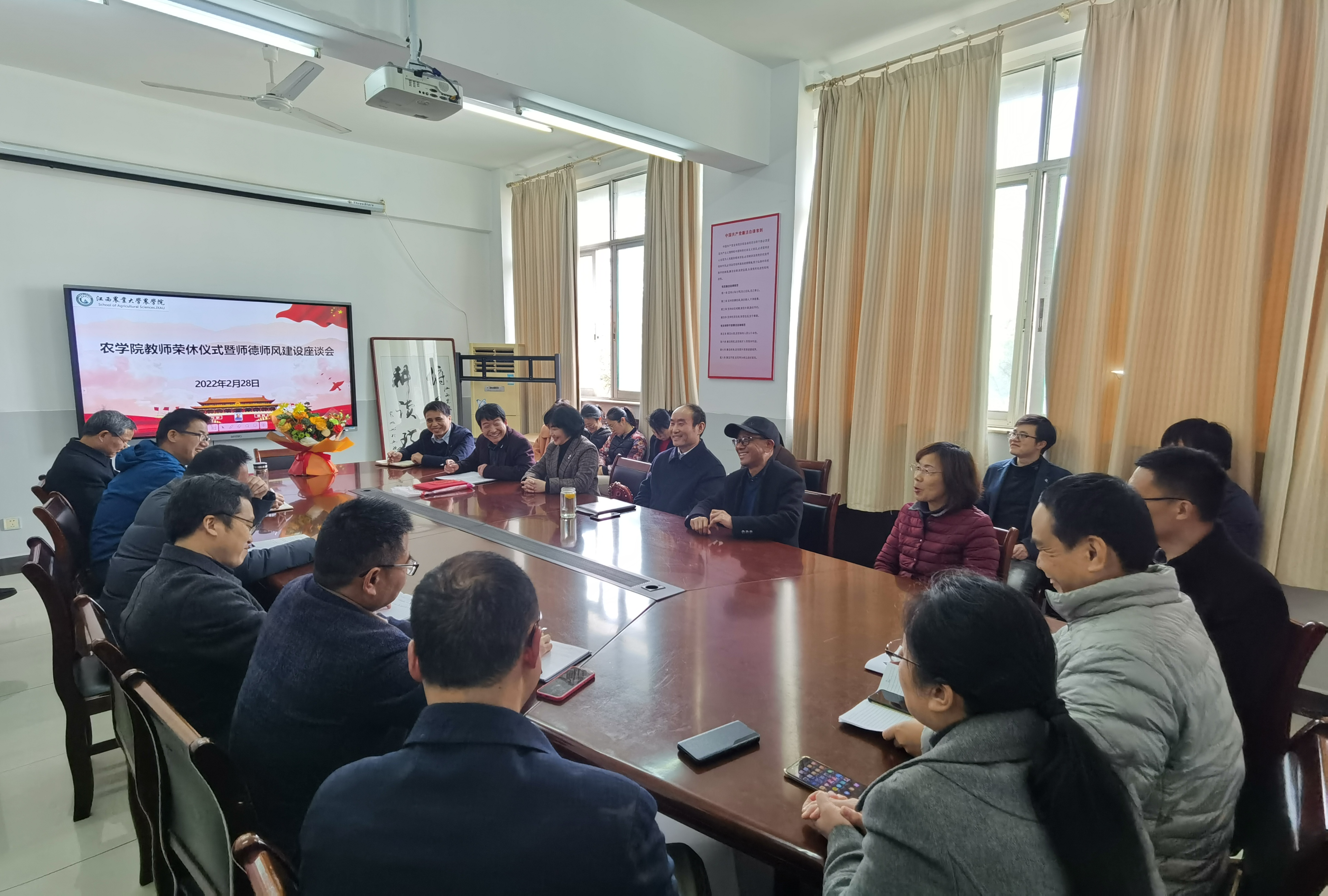 2月28日,农学院举办教师荣休仪式暨师德师风建设座谈会,学院在家领导班子成员、农学系全体教师、工会委员以致敬奉献者、争做好老师谈心互勉的方式见证了刘齐元教授的光荣退休。
