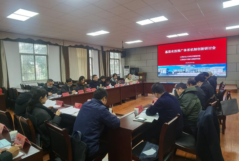 2月10日下午,由经济管理学院、江西省乡村振兴战略研究院承办的基层农技推广体系机制创新研讨会,在经管学院经世楼207报告厅召开。来自省农业农村厅、省农技推广中心和南昌市、上饶市等市县农业农村局以及校科技处、经管学院等单位的相关人员参加了会议。会议由经管学院副院长廖文梅教授主持。会前,副校长黄英金亲切会见了与会人员。