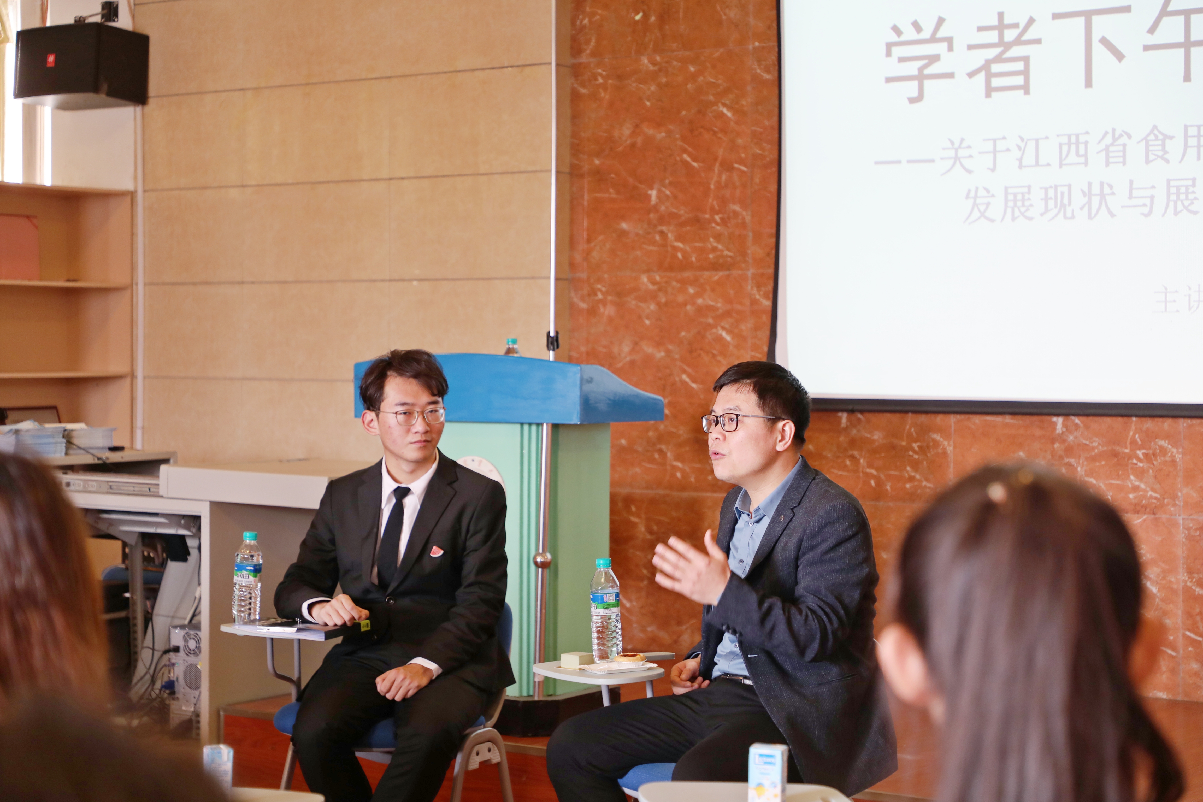 短暂休息后,胡殿明教授分享了自身研究的科研成果,用数据展示了江西食用菌产业发展的巨大潜力以及食用菌在碳达峰碳中和、生态系统保护和人类健康发展中的重要作用,并向青年学生普及了一些实用的菌类知识,他希望同学们能够积极宣传菌类知识,做新时代“食用菌代言人”!
